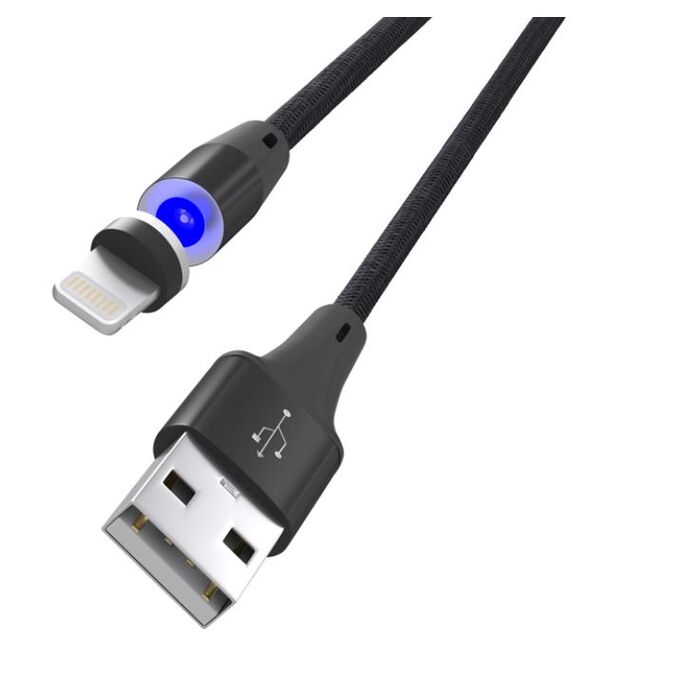 Магнитный кабель Ritmix RCC-522 Lightning Apple 8pin - USB, 2А, 1м, тканевая оплетка Magnet Black