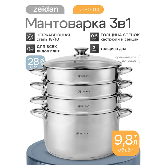 Мантоварка ZEIDAN Z-501114 d28см 9,8л нерж