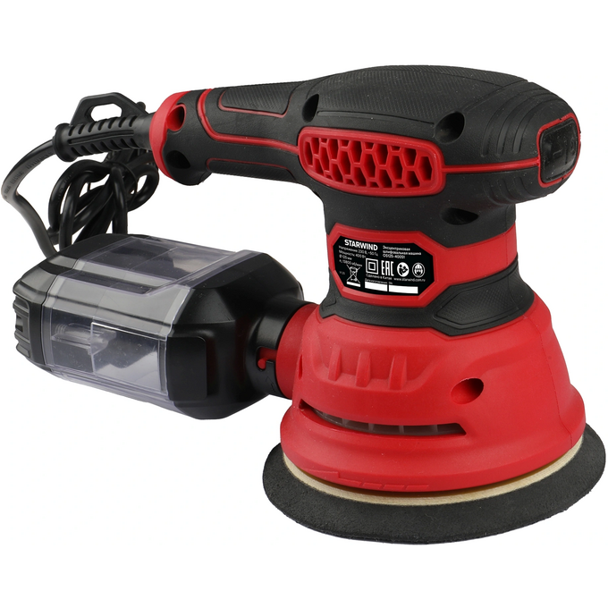Машина шлифовальная эксцентриковая STARWIND 125, регулировка, 12,000 об/мин, 400Вт, 2,5мм ампл, коробка + 1 шлифовальный диск