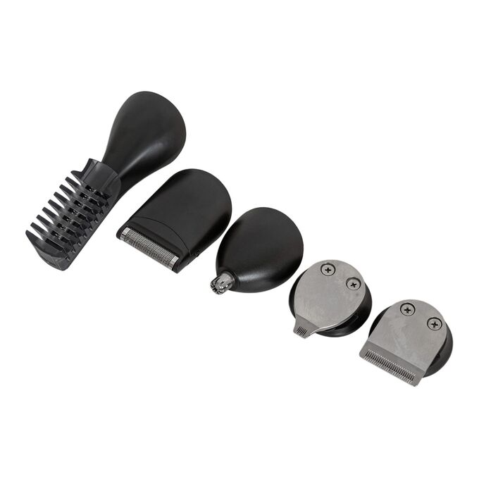 Насадки 3 мм, 6 мм, 9 мм, 12 мм для полноразмерного триммера; 2 мм, 3,5 мм, 5 мм, 6 мм для узкого триммера; 2,8 мм, 5,8 мм, 9,8 мм для триммера для тела
