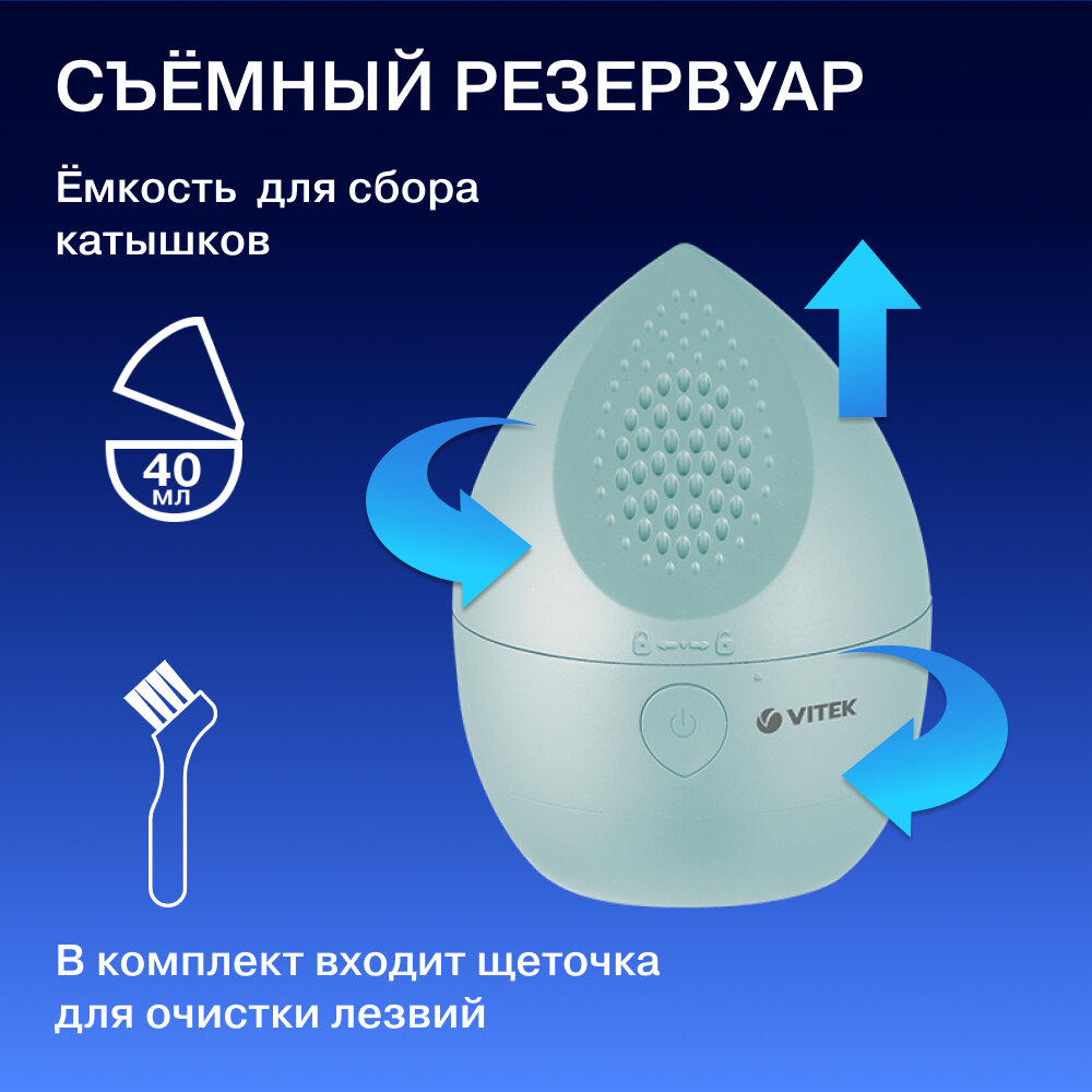 Обеспечить безупречный внешний вид трикотажному джемперу, свитеру или платью поможет машинка для очистки ткани VITEK VT-9500, работающая от аккумулятора Li-ion.