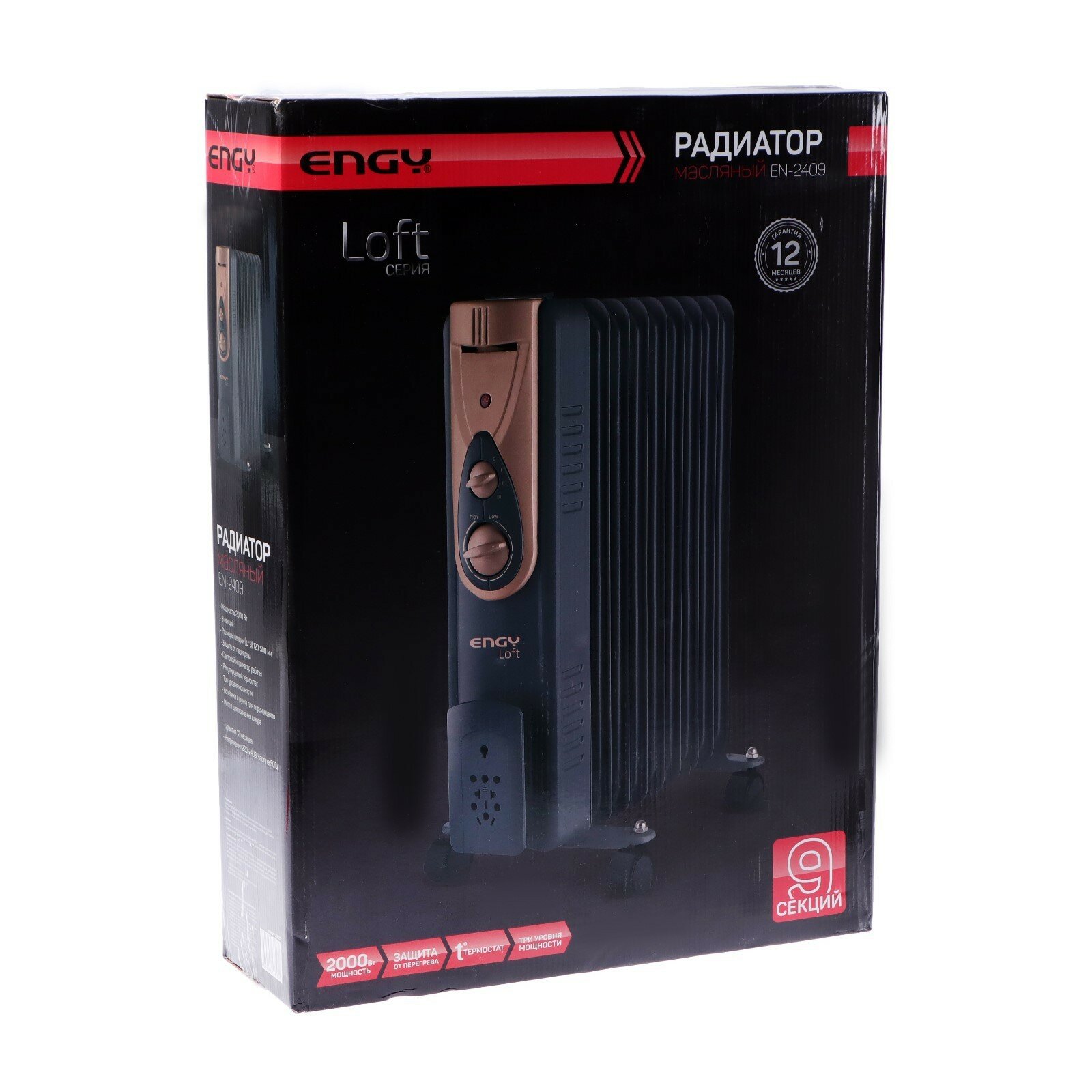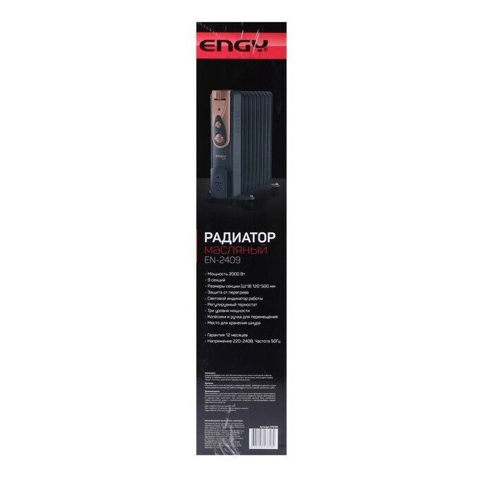Масляный радиатор Engy EN-2409 Loft 15125 используется как основной или дополнительный источник тепла. Мощность прибора составляет 2000 Вт. Световой индикатор загорается при включении прибора.