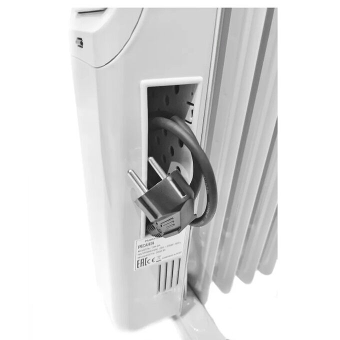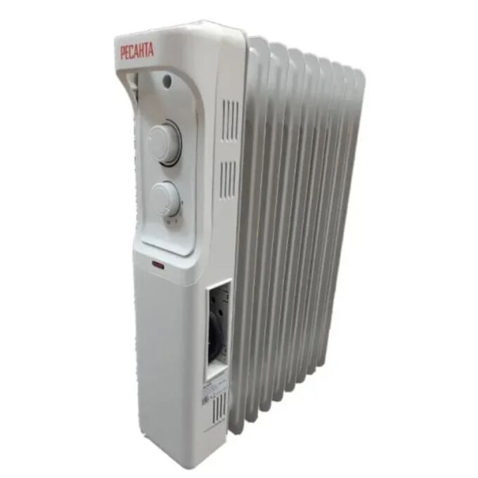 "Масляный радиатор Ресанта ОМ-9А 2 кВт 67/3/16 служит для обогрева воздуха в помещении и создания комфортной температуры в холодное время года. Устройство автоматически поддерживает заданную температуру за счет механического термостата. Модель не выжигает кислород в помещении благодаря низкой температуре корпуса.