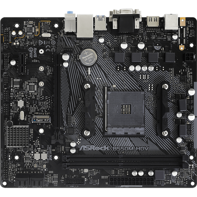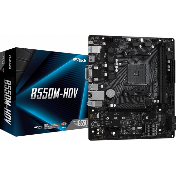 MB sAM4 Asrock B550M-HDV, AMD B550, 2xDDR4-3200, D-SUB+DVI-D+HDMI, 1xPCI-Ex16, 1xPCI-Ex1, 4xSATA3(RAID 0/1/10), 1xM.2, 8 Ch Audio, 1xGLan