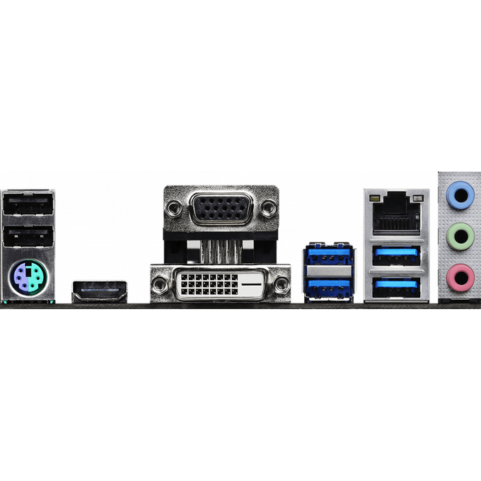 Разъёмы на задней панели : PS/2, 2 x USB 2.0, 4 x USB 3.2 Gen1, VGA, DVI, HDMI, RJ-45