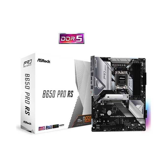 MB sAM5 ASRock B650 PRO RS, AMD B650, 4xDDR5-5200, HDMI+DP, 2xPCI-Ex16, 1xPCI-Ex1, 4xSATA3(RAID 0/1/10), 3xM.2, 8 Ch Audio, 1x2.5GLan, (6+3)xUSB2.0, (3+2)xUSB3.2, (1+1)xUSB3.2 Type-C™, ATX, RTL