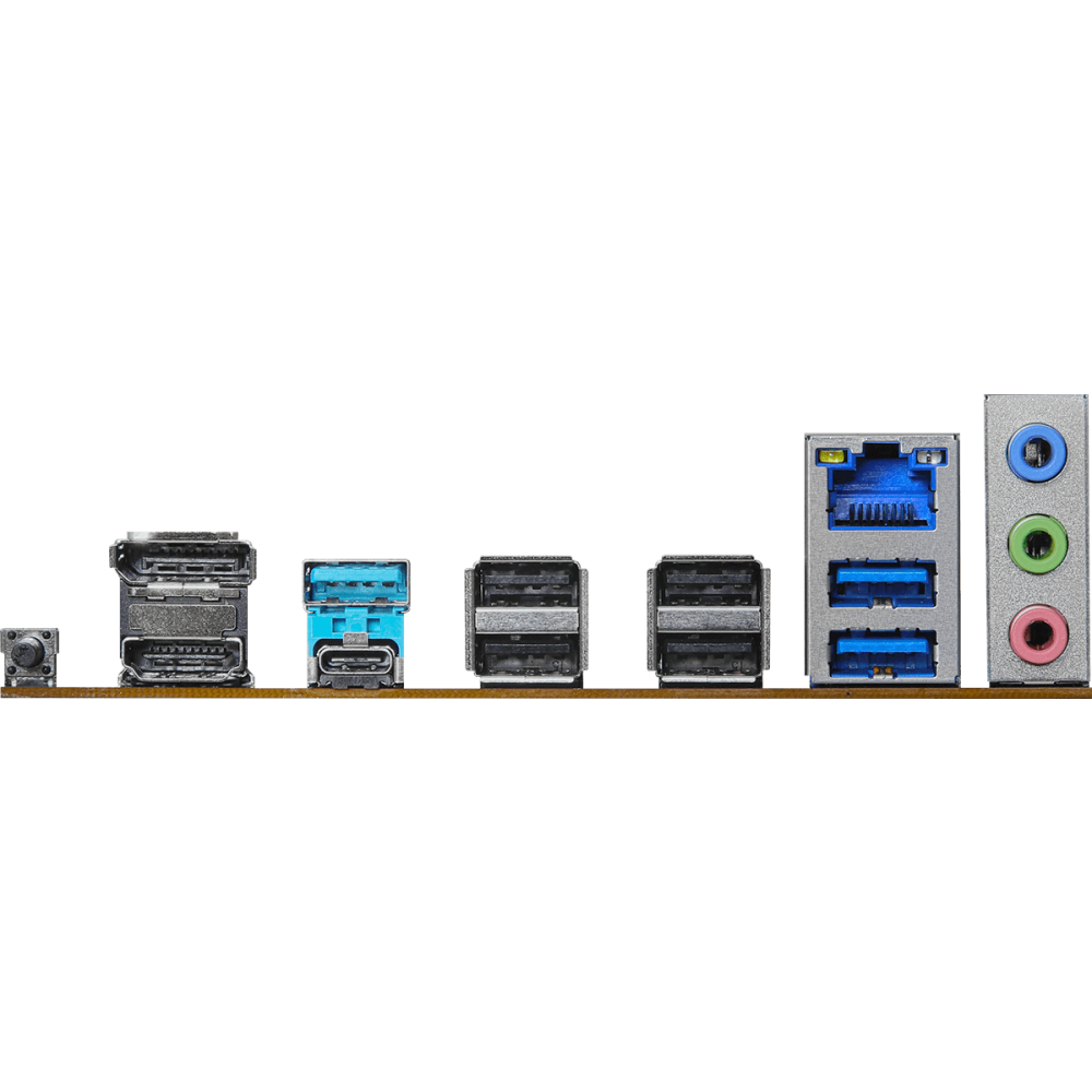 4 x USB 2.0, 2 x USB 3.2 Gen1, USB 3.2 Gen2, USB 3.2 Gen2 Type-C, HDMI, DisplayPort, RJ-45