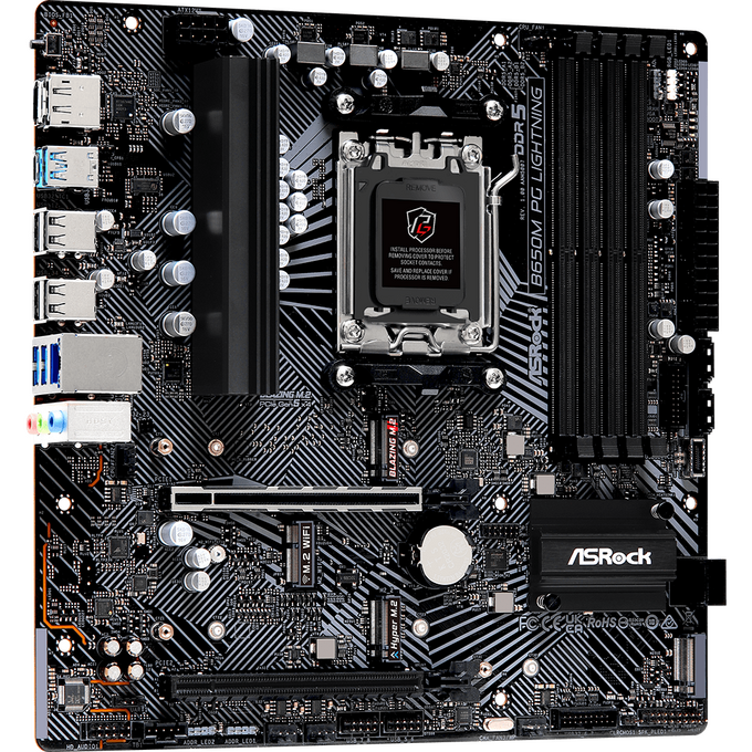MB sAM5 ASRock B650M PG LIGHNING, AMD B650, 4xDDR5-5200, HDMI+DP, 2xPCI-Ex16, 4xSATA3(RAID 0/1/10), 3xM.2, 8 Ch Audio, 1x2.5GLan, (4+4)xUSB2.0, (3+4)x