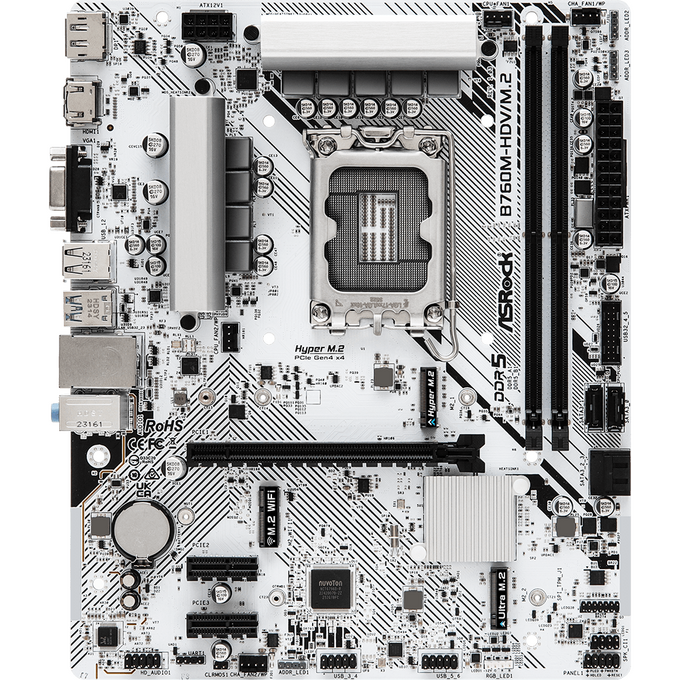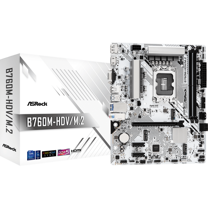 MB s1700 ASRock B760M-HDV/M.2, Intel®B760, 2xDDR5-4800, D-SUB+HDMI+DP, 1xPCI-Ex16, 2xPCI-Ex1, 4xSATA3(RAID 0/1/5/10), 2xM.2, 8 Ch Audio, 1x2.5GLan, (2+4)xUSB2.0, (3+2)xUSB3.2, (1+0)xUSB3.2 Type-C™, 1xPS/2 mATX, RTL