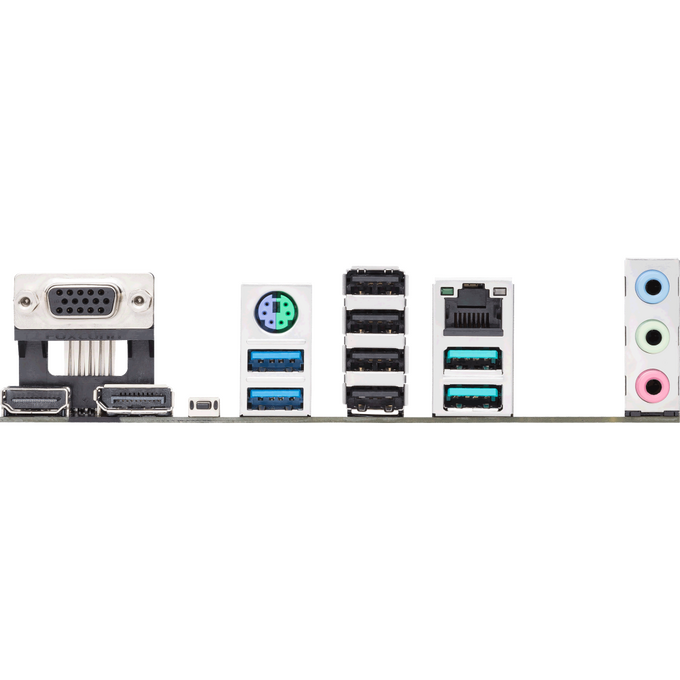PS/2, 4 x USB 2.0, 2 x USB 3.2 Gen1, 2 x USB 3.2 Gen2, VGA, HDMI, DisplayPort, RJ-45