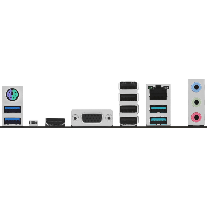 PS/2, 4 x USB 2.0, 2 x USB 3.2 Gen1, 2 x USB 3.2 Gen2, VGA, HDMI