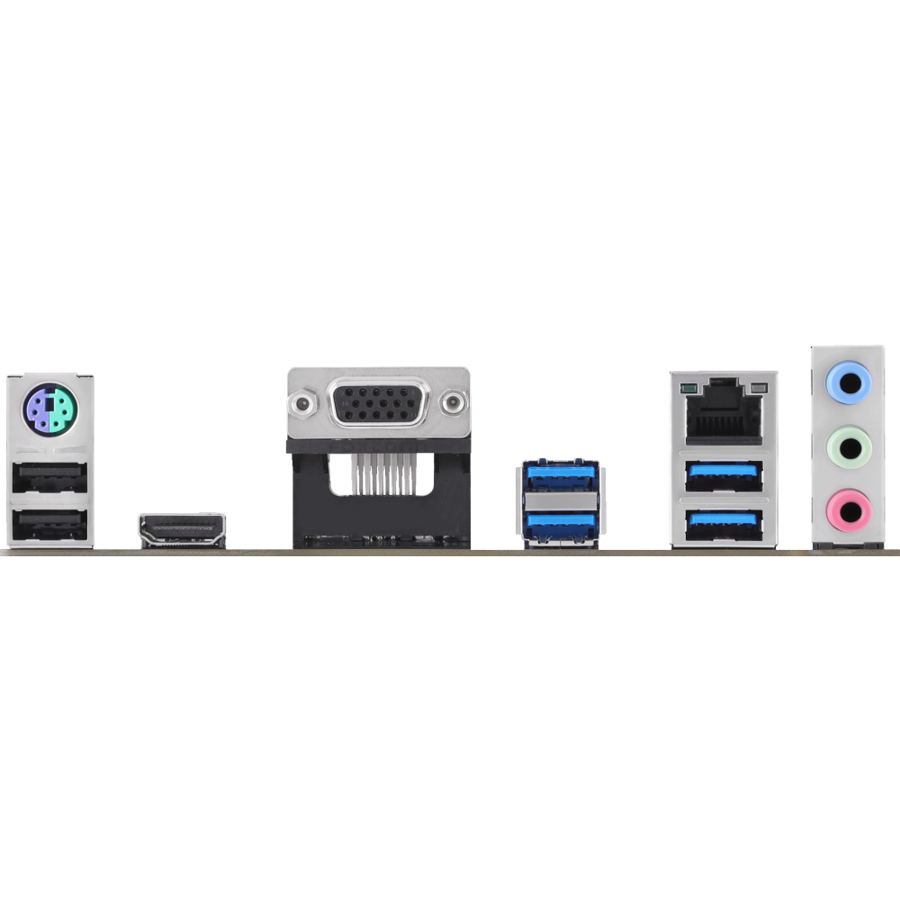 PS/2, 2 x USB 2.0, 4 x USB 3.2 Gen1, VGA, HDMI, RJ-45