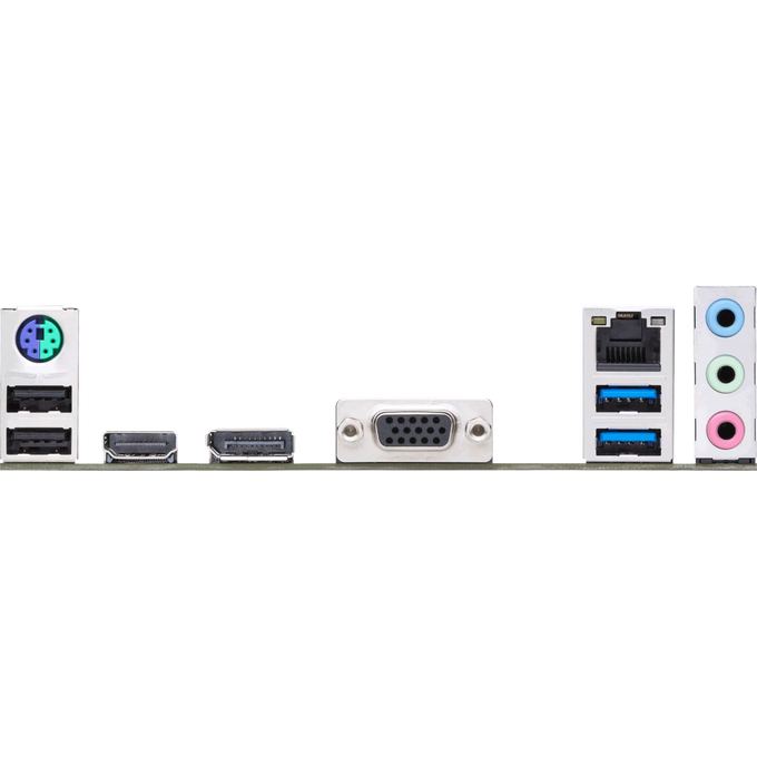 PS/2, 2 x USB 2.0, 2 x USB 3.2 Gen1, VGA, HDMI, DisplayPort, RJ-45