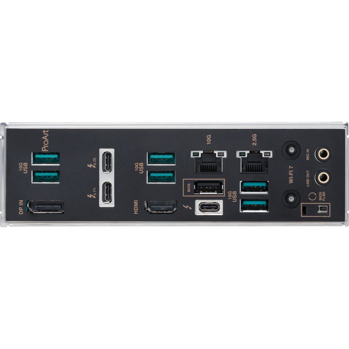 USB 2.0, 6 x USB 3.2 Gen2, HDMI, DisplayPort, 2 x Thunderbolt 5/USB-C, Thunderbolt 4/USB-C, 2 x RJ-45