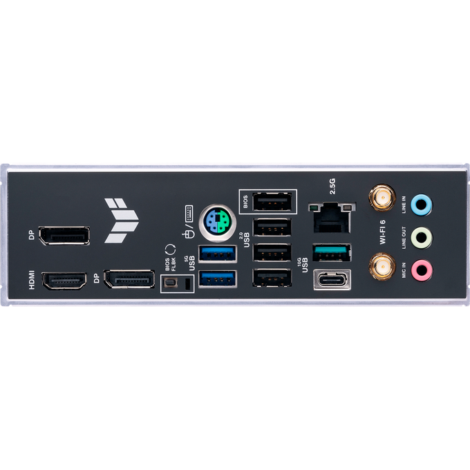 PS/2, 4 x USB 2.0, 2 x USB 3.2 Gen1, USB 3.2 Gen2, USB 3.2 Gen2 Type-C, HDMI, 2 x DisplayPort, RJ-45