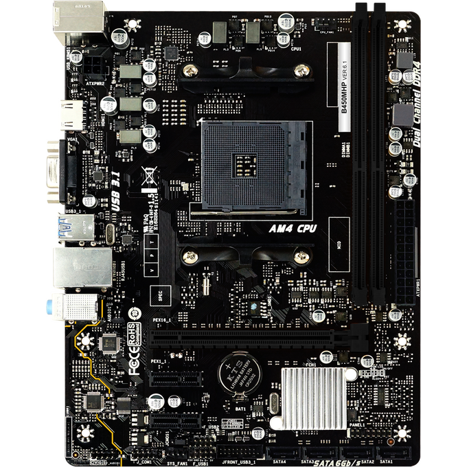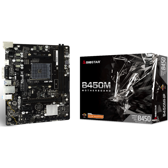 MB sAM4 BIOSTAR B450MHP AMD B450, 2xDDR4-2933 МГц, 1xPCI-Ex16, Micro-ATX