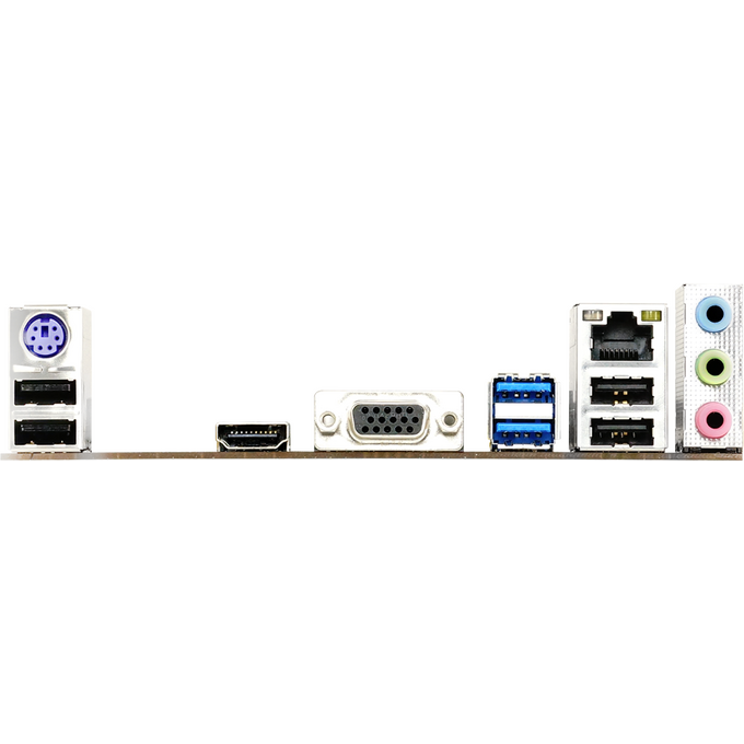 PS/2, 4 x USB 2.0, 2 x USB 3.2 Gen1, VGA, HDMI, RJ-45