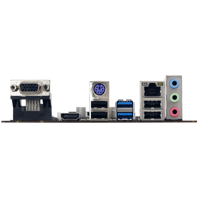PS/2, 4 x USB 2.0, 2 x USB 3.2 Gen1, VGA, HDMI, RJ-45