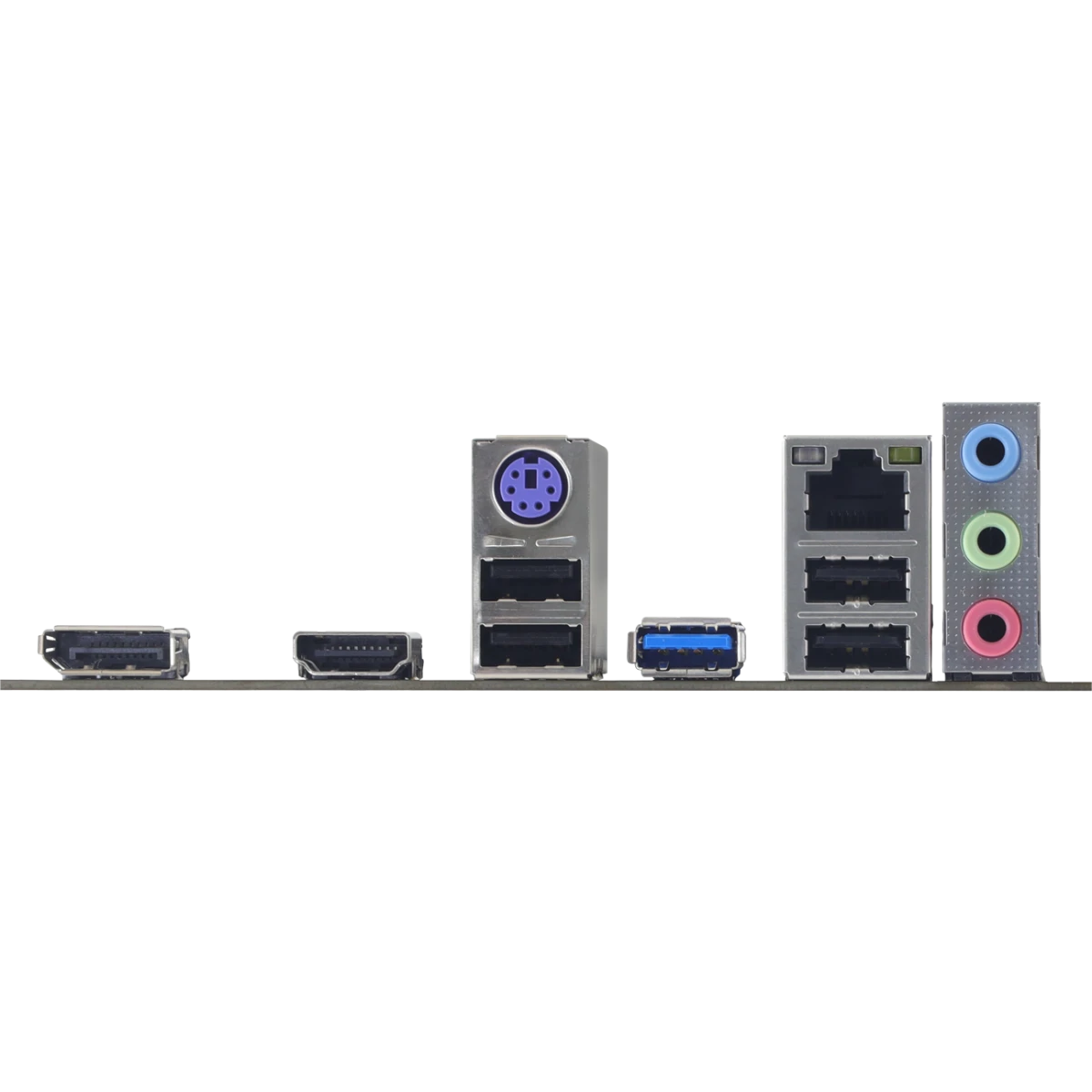 PS/2, 4 x USB 2.0, USB 3.2 Gen1, HDMI, DisplayPort, RJ-45