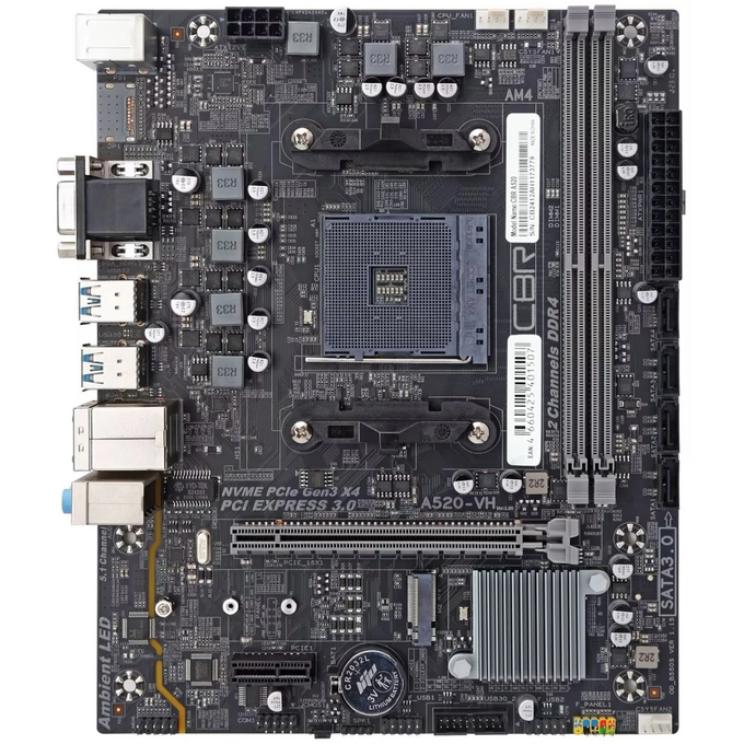 MB sAM4 CBR A520 (MB-ARA520-BLK), A520, 2*DDR4, mATX, VGA+HDMI, 1*PCIEx16,1* PCIEx1,1*M.2(NVME & SATA), 4*SATA3, 2*USB2.0 + 4*USB3.0, LAN 1