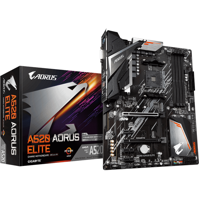 MB sAM4 Gigabyte A520 AORUS ELITE, AMD A520, 4xDDR4-3200, DVI-D+HDMI, 2xPCI-Ex16, 3xPCI-Ex1, 4xSATA3(RAID 0/1/10), 1xM.2, 8 Ch Audio, GLan, (4+4)xUSB2.0, (4+2)xUSB3.2, 1xPS/2, ATX, RTL (8)
