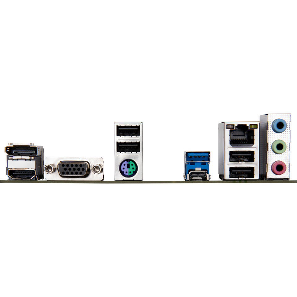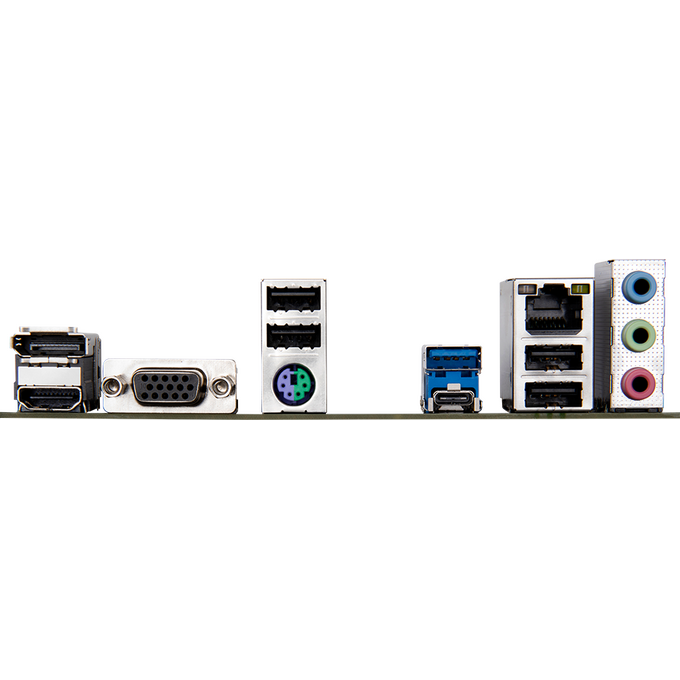 PS/2, 4 x USB 2.0, USB 3.2 Gen1, USB 3.2 Gen1 Type-C, VGA, HDMI, DisplayPort, RJ-45