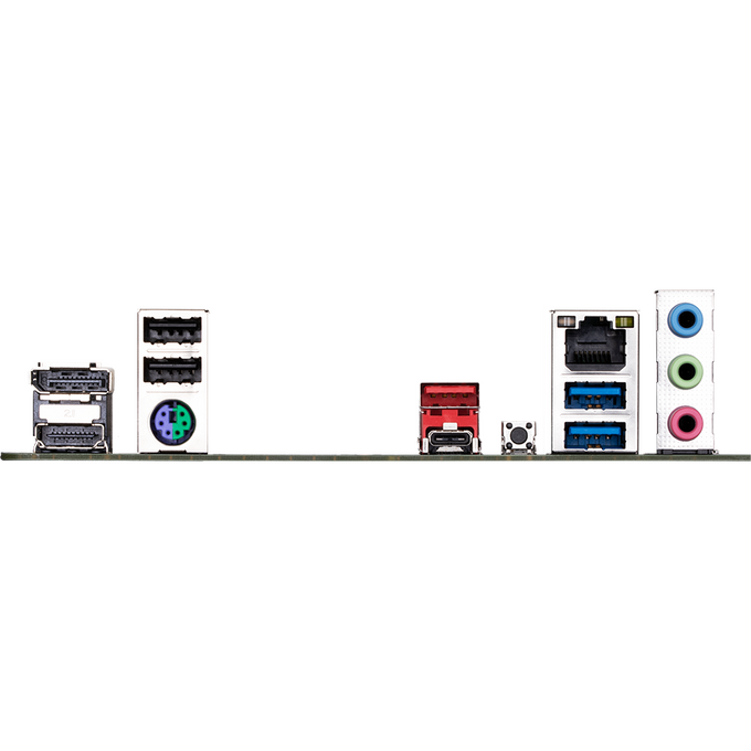 PS/2, 2 x USB 2.0, 2 x USB 3.2 Gen1, USB 3.2 Gen1 Type-C, USB 3.2 Gen2, HDMI, DisplayPort, RJ-45