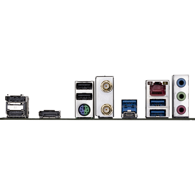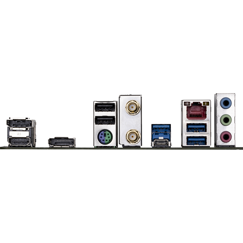 PS/2, 2 x USB 2.0, 3 x USB 3.2 Gen1, USB 3.2 Gen1 Type-C, HDMI, 2 x DisplayPort, RJ-45