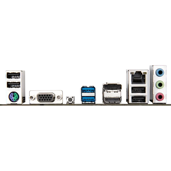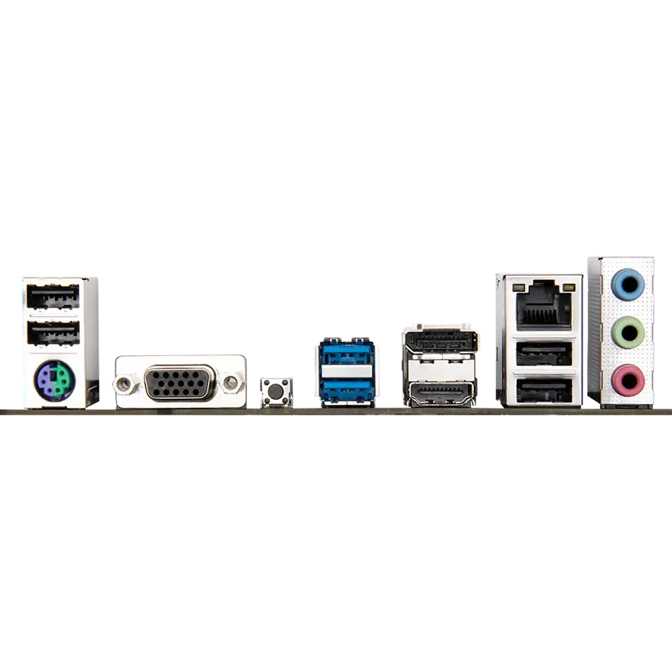 PS/2, 4 x USB 2.0, 2 x USB 3.2 Gen1, VGA, HDMI, DisplayPort, RJ-45
