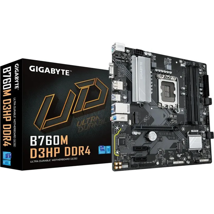 MB s1700 Gigabyte B760M D3HP DDR4, Intel®B760, 4xDDR4-3200, D-SUB+HDMI+DP, 1xPCI-Ex16, 2xPCI-Ex1, 4xSATA3(RAID 0/1/5/10), 2xM.2, 8Ch Audio, GLan, (2+4)xUSB2.0, (3+2)xUSB3.2, (0+1)xUSB3.2 Type-C™, 1xPS/2, ATX, RTL