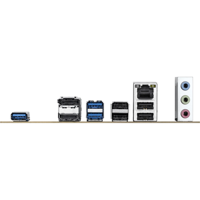 4 x USB 2.0, 3 x USB 3.2 Gen1, HDMI, DisplayPort, RJ-45