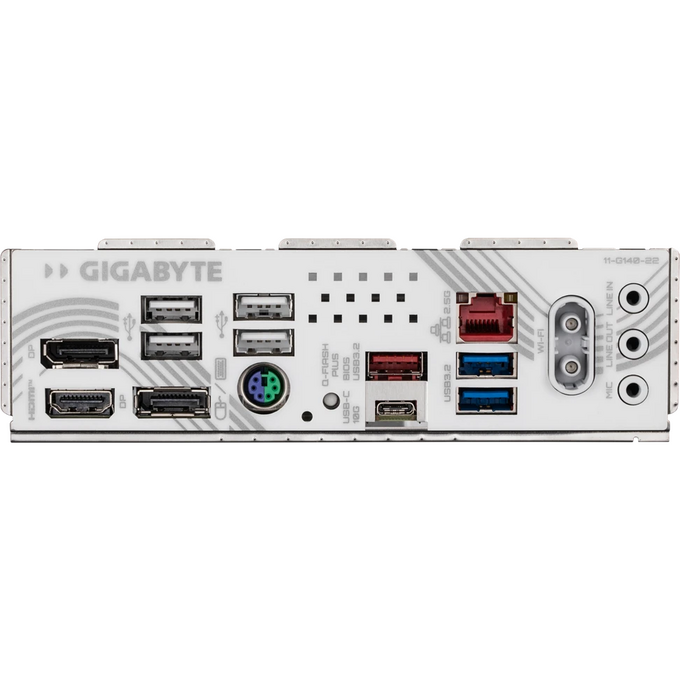 PS/2, 4 x USB 2.0, 2 x USB 3.2 Gen1, USB 3.2 Gen2, USB 3.2 Gen2 Type-C, HDMI, 2 x DisplayPort, RJ-45