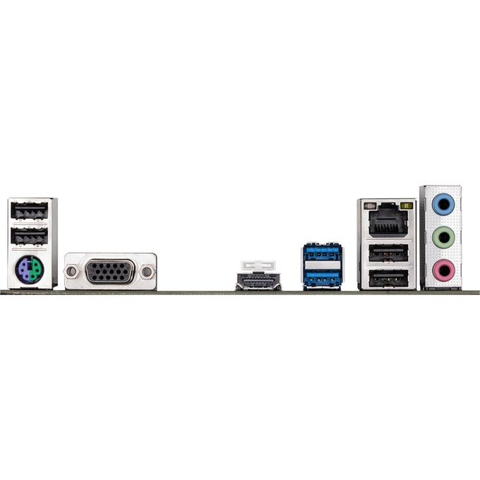 PS/2, 4 x USB 2.0, 2 x USB 3.2 Gen1, VGA, HDMI, RJ-45
