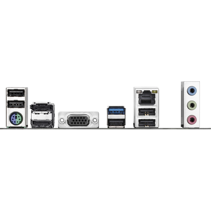 PS/2, 5 x USB 2.0, USB 3.2 Gen1, VGA, HDMI, DisplayPort, RJ-45
