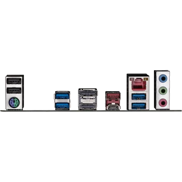 PS/2, 2 x USB 2.0, 4 x USB 3.2 Gen1, USB 3.2 Gen2, USB 3.2 Gen2 Type-C, HDMI, DisplayPort, RJ-45
