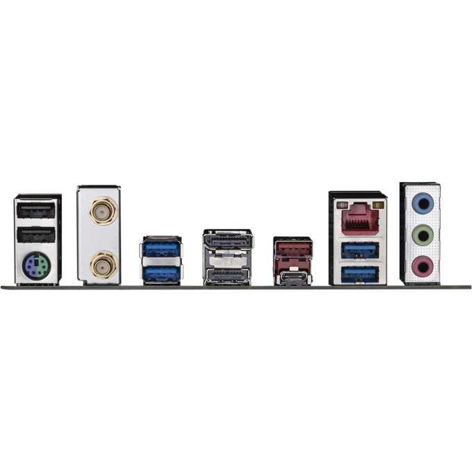 PS/2, 2 x USB 2.0, 4 x USB 3.2 Gen1, USB 3.2 Gen2, USB 3.2 Gen2 Type-C, HDMI, DisplayPort, RJ-45