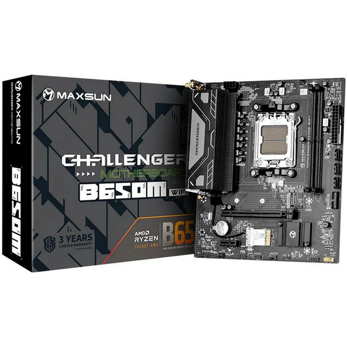 MB sAM5 Maxsun MS-Challenger B650M Wifi (6940709695456), AMD B650, 2xDDR5-4800 МГц, 1xPCI-Ex16, 1xM.2, Micro-ATX