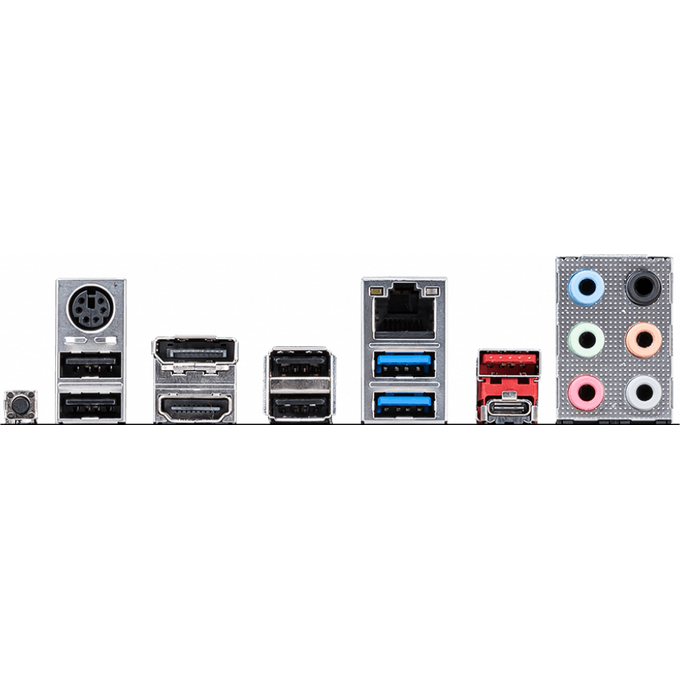 Разъёмы на задней панели : PS/2, 4 x USB 2.0, 2 x USB 3.2 Gen1, USB 3.2 Gen2, USB 3.2 Gen2 Type-C, HDMI, DisplayPort, RJ-45