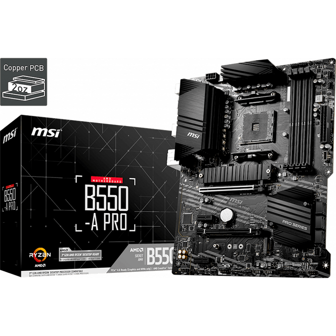 MB sAM4 MSI B550-A Pro, AMD B550, 4xDDR4-3200 МГц, 2xPCI-Ex16, 2xM.2, Standard-ATX