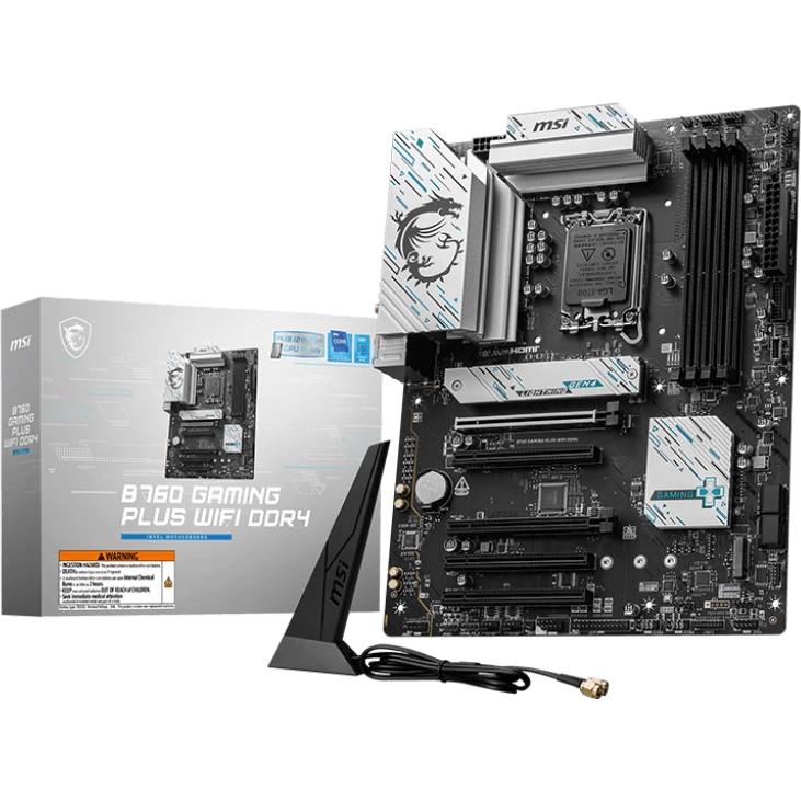 MB s1700 MSI B760 Gaming Plus Wifi DDR4, Intel B760, 4xDDR4-3200 МГц, 5xPCI-Ex16, 2xM.2, Standard-ATX