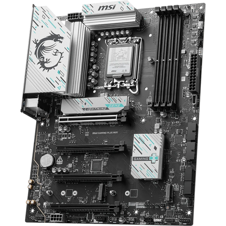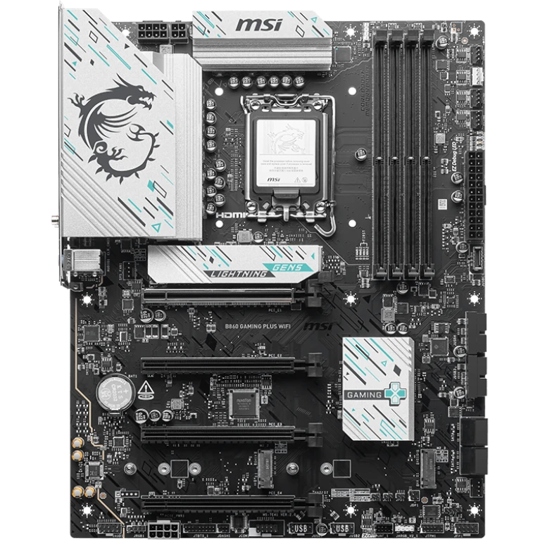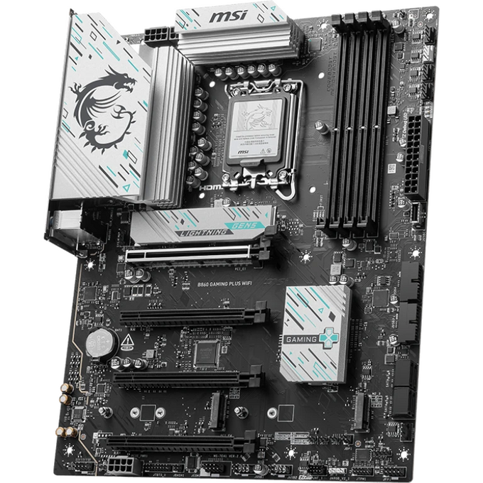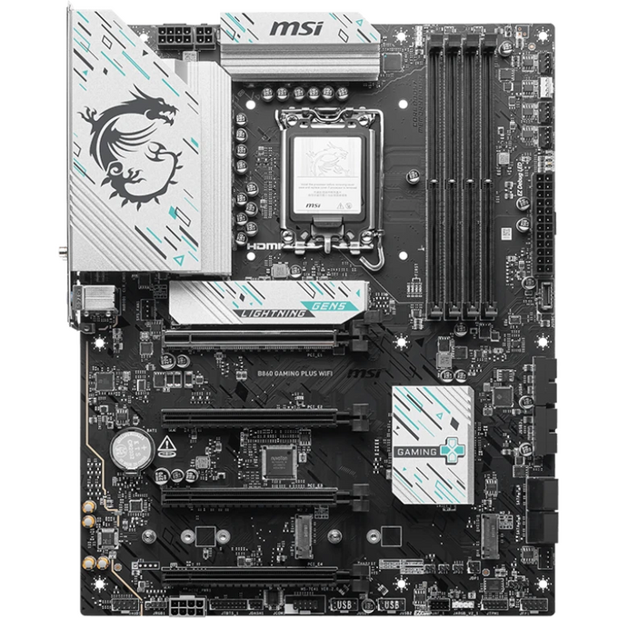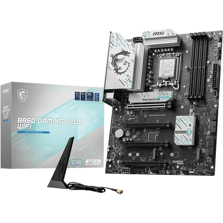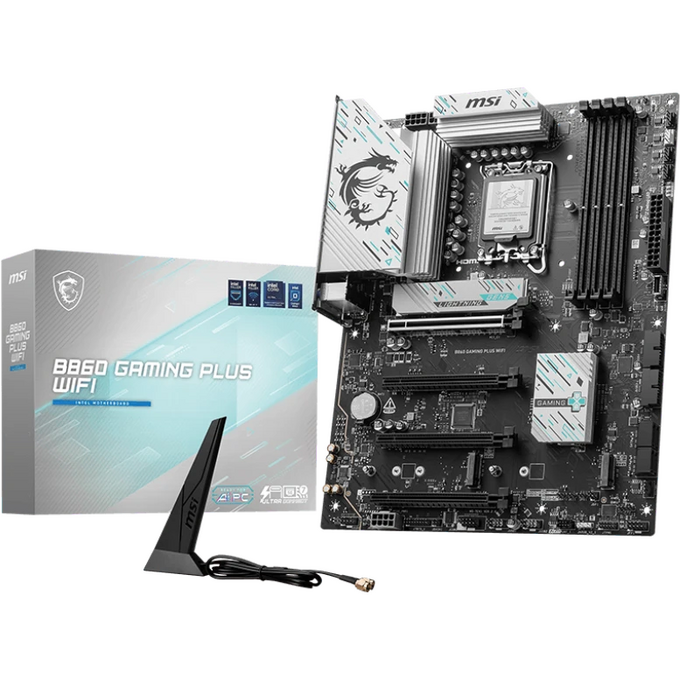 Материнская плата MSI B860 Gaming Plus Wifi B860, LGA1851, 4*DDR5, 4*PCIEx16, 3*M.2, 1*TypeC, 2*USB3.2Gen2, 6*USB3.2Gen1, 8*USB2.0, 4*SATA3.0, 5G, Typ