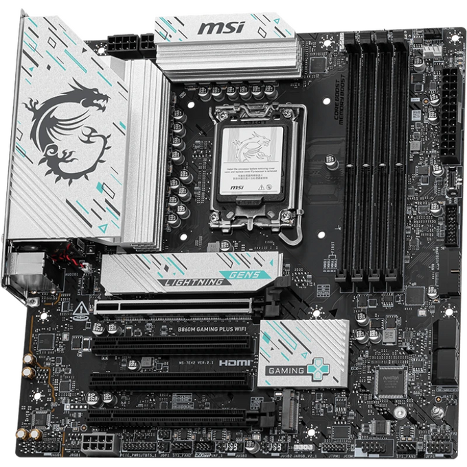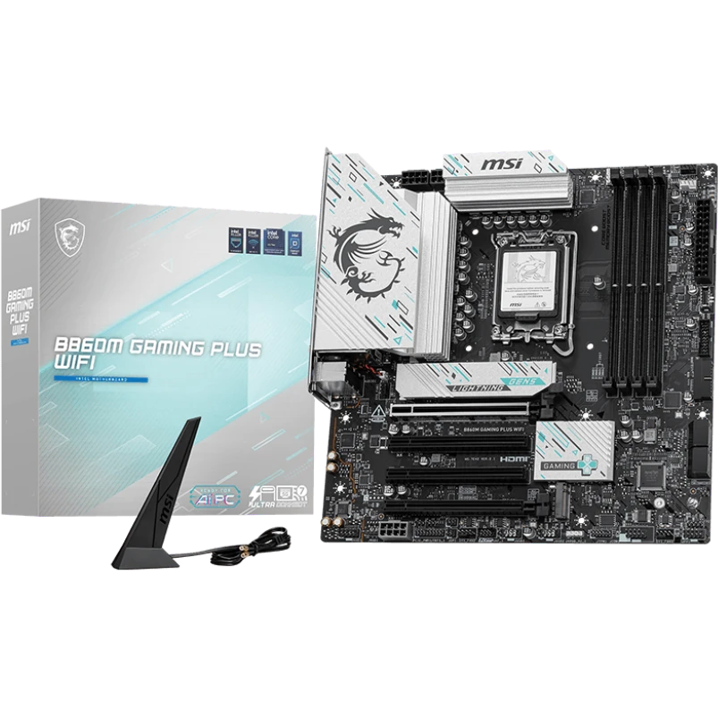 Материнская плата MSI B860M Gaming Plus Wifi B860, LGA1851, 4*DDR5, 4*PCIEx16, 3*M.2, 1*TypeC, 1*USB3.2Gen2, 5*USB3.2Gen1, 6*USB2.0, 4*SATA3.0, 5G, Ty
