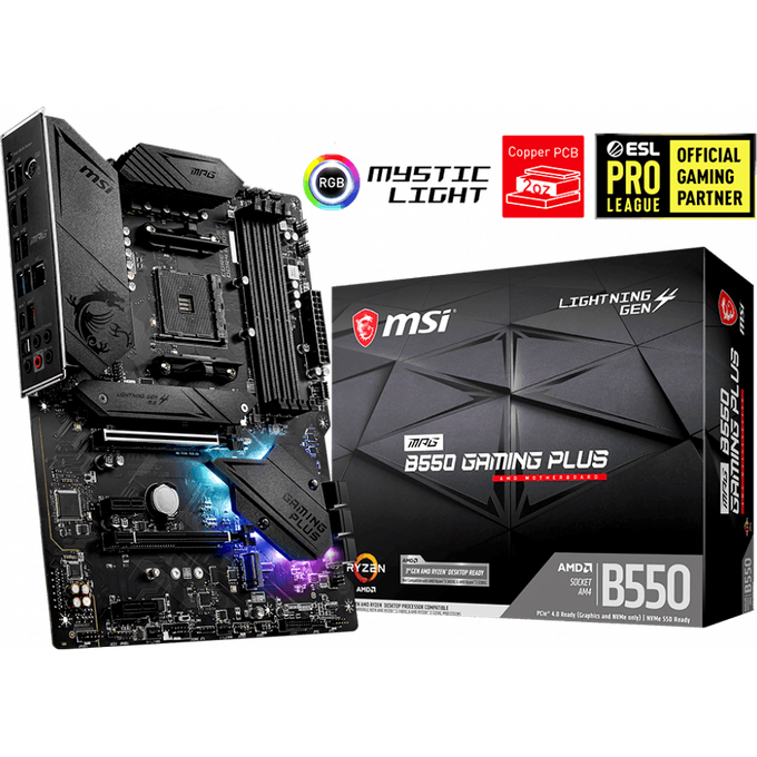 MB sAM4 MSI MPG B550 GAMING PLUS, ATX, AMD B550, 4xDDR4, 1xPCI-E4.0x16/1xPCI-E3.0x16(x4)/2xPCI-E3.0x1, 6xSATA3/2xM.2, RTL 8111H LAN, ALC897, HDMI/DP, USB3.2(Type-C)/2xUSB3.2/4xUSB2.0, PS/2
