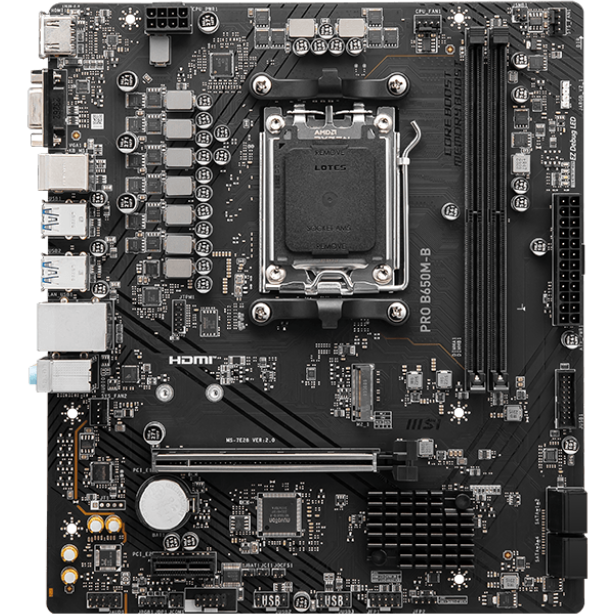 MB sAM5 MSI PRO B650M-B, 2xDDR5,1PCI-Ex16,1PCI-Ex1,1M.2,4SATA3,6USB3.2 Gen1,6USB2.0,HD Audio