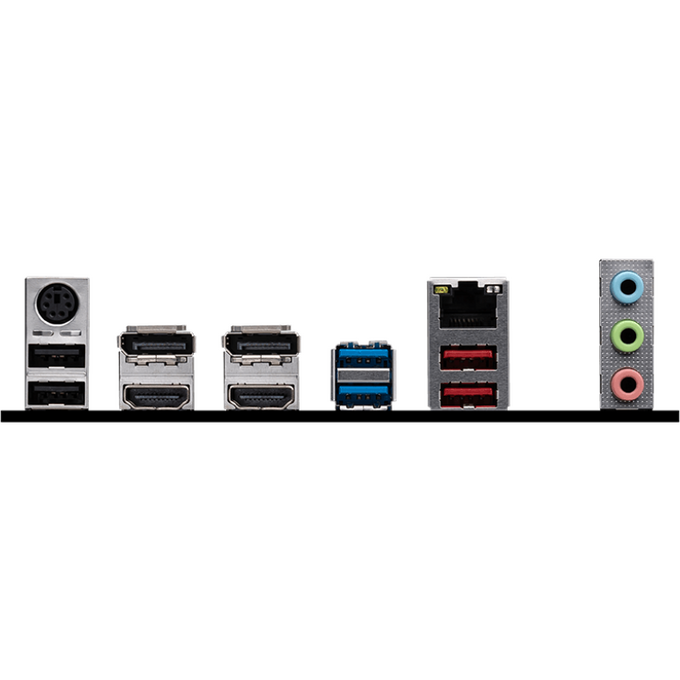 PS/2, 2 x USB 2.0, 2 x USB 3.2 Gen1, 2 x USB 3.2 Gen2, 2 x HDMI, 2 x DisplayPort