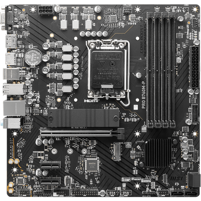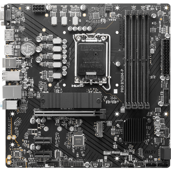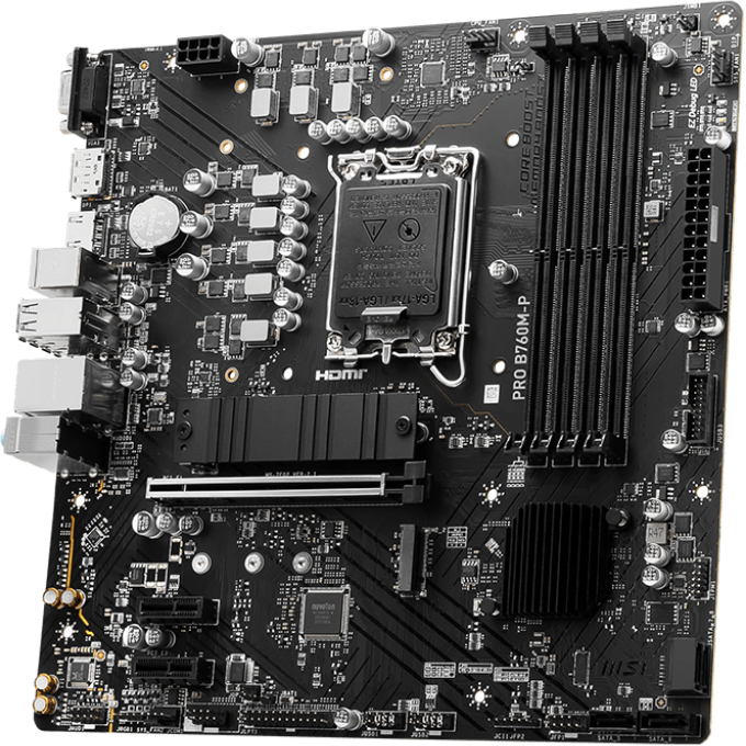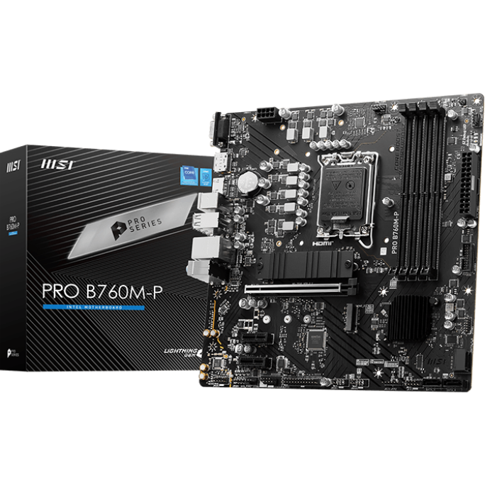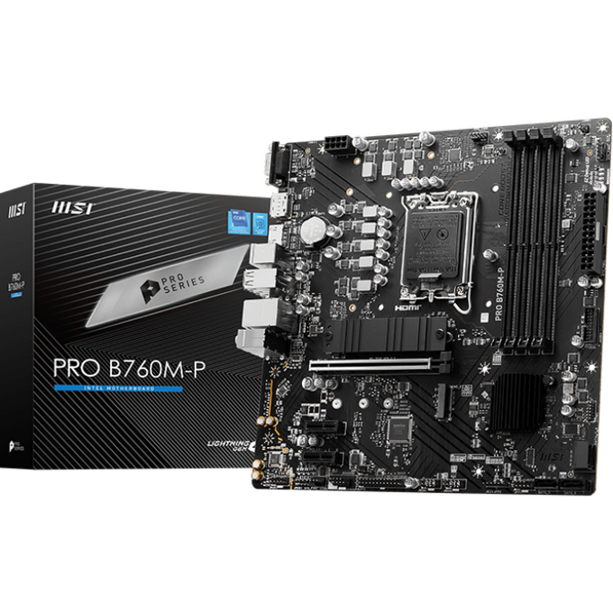 MB s1700 MSI Pro B760M-P, 4*DDR5, 1*PCIEx16, 2*PCIEx1, 2*M.2, 1*TypeC, 3*USB3.2Gen1, 8*USB2.0, 4*SATA3.0, 1G, VGA, DP, HDMI, M-ATX, RTL