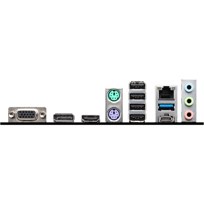 2 x PS/2, 4 x USB 2.0, USB 3.2 Gen1, USB 3.2 Gen2 Type-C, VGA, HDMI, DisplayPort, RJ-45