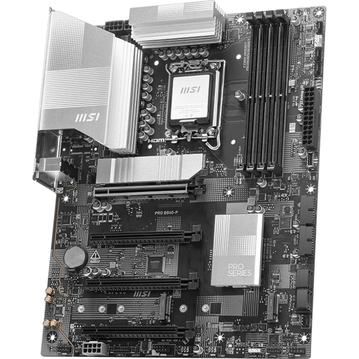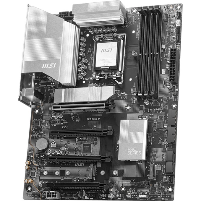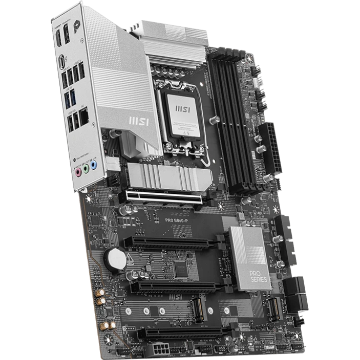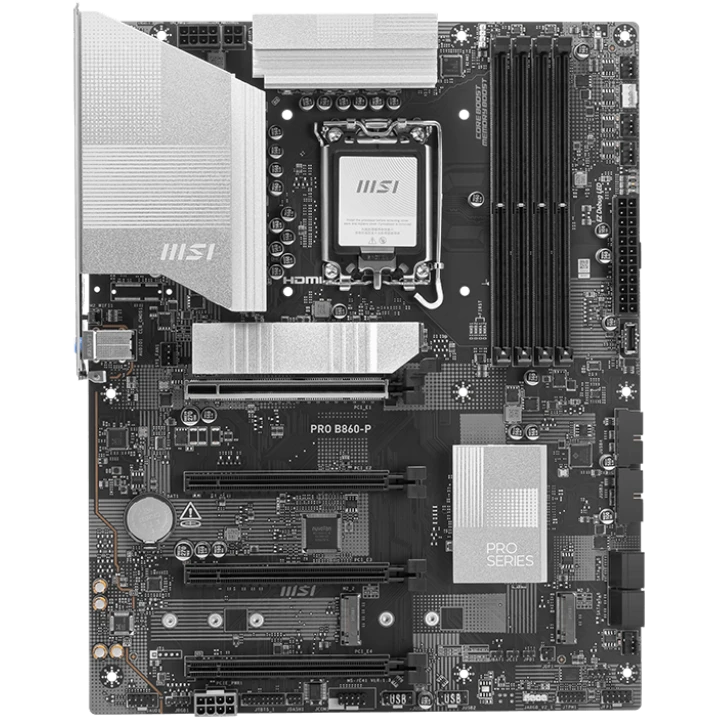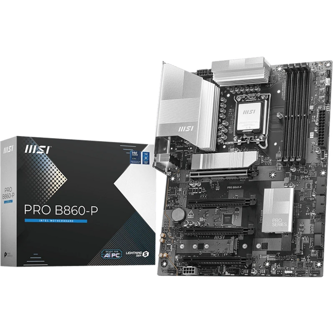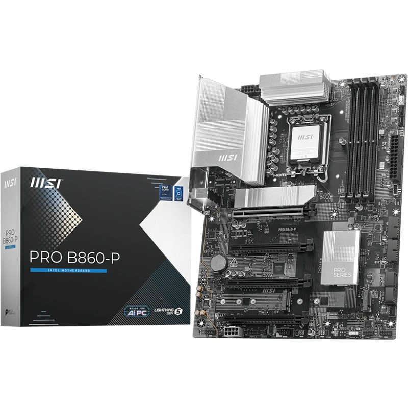 Материнская плата MSI Pro B860-P B860, LGA1851, 4*DDR5, 4*PCIEx16, 3*M.2, 1*TypeC, 2*USB3.2Gen2, 6*USB3.2Gen1, 8*USB2.0, 4*SATA3.0, 5G, Type-C DP, DP,