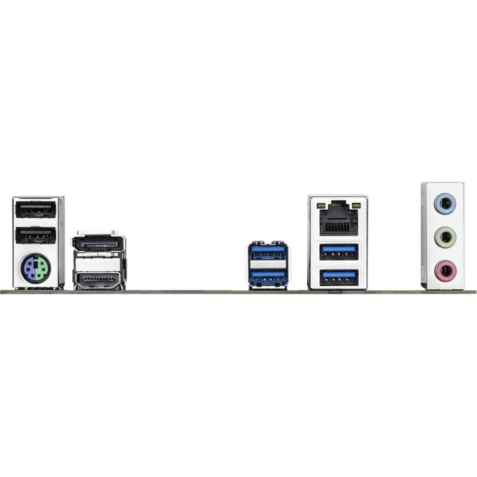 PS/2, 2 x USB 2.0, 4 x USB 3.2 Gen1, HDMI, DisplayPort, RJ-45