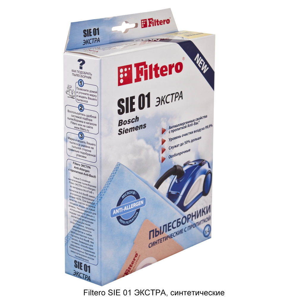 Мешки для пылесоса Filtero SIE 01 (4 штуки) ЭКСТРА Bosch, Siemens, Karcher, Shivaki, Conti, Ufesa